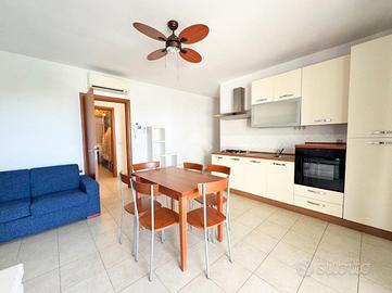 TECNOCASA VASTO MARINA Contattaci per fissare una visita! Proponiamo in vendita all'interno del residence 'Le Palme', un interessante soluzione posta al secondo piano di una palazzina servita d'ascensore.Entrando veniamo accolti dal disimpegno che conduce nel luminoso soggiorno con cucina a vista che da accesso al terrazzo esterno di 70 mq. La zona notte è composta da luminosa camera da letto , bagno con doccia e cameretta. La soluzione è accessoriata da pavimentazione unica in tutta la casa, videocitofono, portone blindato, climatizzatori inverter, zanzariere e tapparella elettrica. All'interno del residence sono presenti varie arie condominiali tra cui l'area relax con piscina. Completa la proprietà un posto auto di proprietà e il box auto.