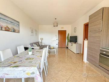 TECNOCASA VASTO MARINA Appartamento con terrazzo vista mare. Proponiamo in vendita, in Via Costa Contina, un appartamento posto al primo piano di una palazzina servita da ascensore. La soluzione si compone di ampio soggiorno con angolo cottura, terrazzo abitabile con vista mare, bagno con vasca, due camere da letto di cui una con accesso su balconce, ripostiglio e bagno con doccia. L'immobile è accessoriato con pavimentazione unica in tutta la casa, videocitofono, climatizzatore, termosifoni in alluminio, tapparelle elettriche e tenda da sole. Completa la proprietà un box auto di 25 mq. Che aspetti? Contattaci per fissare una visita!