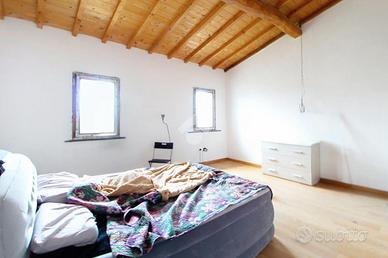 Tramite la scala si accede alla zona notte composta da due camere da letto matrimoniali di ampia metratura e il bagno con vasca e finestra.