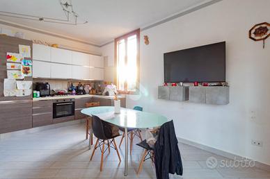 Accedendo attraverso il giardino esclusivo di circa 70 mq, si entra nella cucina abitabile, che include un pratico sgabuzzino provvisto di un addolcitore, per garantire acqua potabile sempre disponibile in casa.
