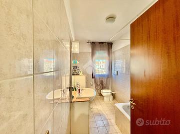 La zona notte è composta da due camere di cui una matrimoniale e una singola e due bagni di cui uno finestrato e uno cieco.