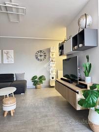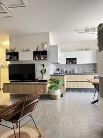 Entrando nell'appartamento, troviamo un comodo ripostiglio, ideale per riporre oggetti e mantenere l'ordine in casa. Proseguendo, arriviamo in un confortevole open space con angolo cottura, perfetto per vivere appieno la convivialità domestica. Come in questo caso, l'area living è concepita per essere versatile e accogliente, offrendo la soluzione perfetta per serate tranquille o incontri sociali.