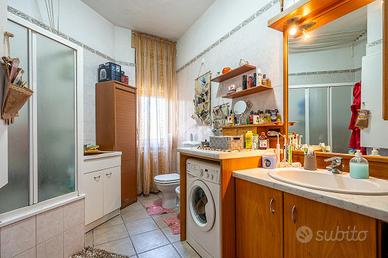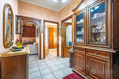 L'edificio, di concezione signorile, si trova nel pieno centro della Città, in posizione cruciale per la presenza in prossimità di tutti i servizi, inoltre risulta distante soltanto pochi passi dall'ingresso della tangenziale. La sua costruzione risale al 1960 e si presenta in ottimo stato sia per quanto riguarda le facciate che per quanto riguarda le altre parti comuni, essendo stati recentemente completati lavori straordinari di mantenzione delle facciate. L'edificio, inoltre, è dotato di ascensore e l'impianto di riscaldamento è centralizzato con termovalvole e contabilizzatori individuali del calore. La caldaia condominiale è stata sostituita nel 2021 con un moderno modello a condensazione. L'appartamento oggetto della proposta è posizionato al piano rialzato (seppur dal lato cortile, invece, risulti un primo piano) e gode di una grande luminosità, essendo disposto su tre arie. Al suo interno si presenta in ottime condizioni, essendo stato oggetto di una radicale ristrutturazione circa 20 anni fa, compresa l'installazione delle tapparelle elettriche. I serramenti esterni sono in buono stato e, pur essendo quelli originali, sono già della tipologia con vetro camera. La distribuzione degli ambienti è quella classica del periodo della costruzione, con l'ampio ingresso che funge da disimpegno e dà accesso anche al comodo ripostiglio ed all'ampio bagno, finestrato ed accessoriato sia con la vasca, utilizzabile anche come box doccia che con il pratico lavatoio. Le due camere da letto sono spaziose, in particolare quella matrimoniale ed entrambe hanno accesso ad un balcone. Anche il soggiorno è ampio, dà accesso al secondo balcone ed è accessoriato con la parete cottura. Completa la proposta la cantina posta al piano interrato.