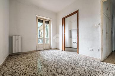 La palazzina si trova nel pieno centro della Città, in posizione cruciale e servita da mezzi pubblici, scuole, supermercati e negozi, compresa la farmacia. Risulta in prossimità del corso Garibaldi e poco distante dall'ingresso della tangenziale e dal viale Buridani. La sua costruzione risale al 1959 e si presenta in buono stato sia per quanto riguarda le facciate che per quanto riguarda le altre parti comuni. L'edificio, inoltre, è dotato di un piccolo ma funzionale ascensore. L'impianto di riscaldamento è centralizzato con termovalvole e contabilizzatori individuali del calore e la caldaia condominiale è del modello cosiddetto a condensazione. L'appartamento proposto è situato al secondo piano e gode di una buona luminosità, essendo disposto su due arie, con due balconi. La disposizione interna è quella classica del periodo della costruzione, con l'ampio ingresso che disimpegna tutti gli ambienti e ne rappresenta il fulcro centrale. Il soggiorno e l'adiacente cucinotto potrebbero essere accorpati per realizzare un'ampia cucina abitabile, con balcone lato cortile. Le due camere sono spaziose ed una di esse potrebbe essere accorpata all'ingresso per realizzare un'ampio soggiorno living. Il bagno, finestrato, è accessoriato con il pratico box doccia. Completa la proposta la cantina posta al piano interrato.