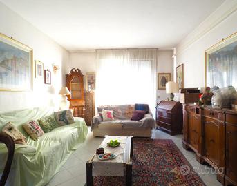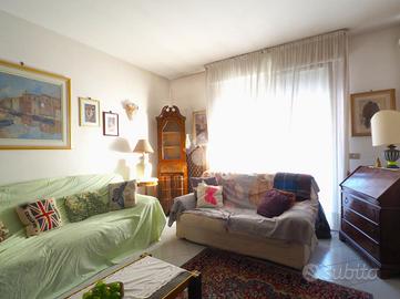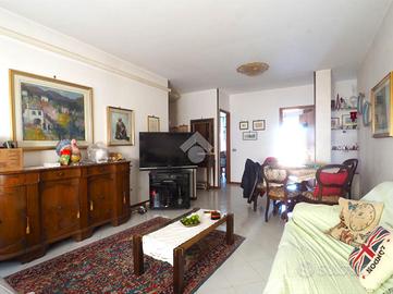 L'immobile offre un ampio soggiorno con accesso al terrazzo, cucina abitabile, due camere di cui una matrimoniale e una singola e due bagni, uno finestrato con vasca e l'altro cieco con doccia.