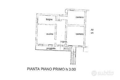 L'abitazione fa parte di uno stabile riammodernato esternamente suddiviso in tre unità immobiliari e si trova al primo piano alla quale si accede attraverso lo scoperto privato e la scala di proprietà esclusiva.