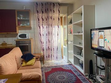 Al nostro ingresso troveremo un disimpegno di modeste dimensioni alla destra del quale si accede alla zona giorno dell'immobile costituita da cucina e sala da prazo openspace con accesso alla terrazzina esposta ad ovest ed un bagno finestrato con dotato di vasca.