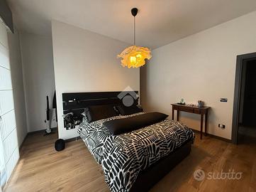 L'appartamento ha accesso direttamente sulla vasta e luminosa zona living open-space con angolo cottura e poggiolo.