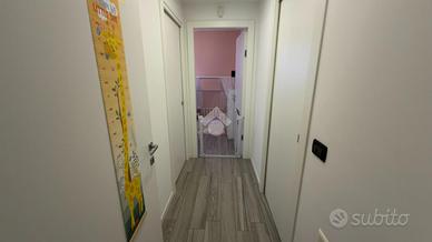 L'appartamento si trova al piano rialzato di una palazzina di recente costruzione, composta da sole quattro unità abitative, la soluzione ci ospita con un ingresso molto spazioso e luminoso con accesso diretto alla zona giorno composta da cucina e soggiorno open-space con accesso diretto al primo terrazzo abitabile, perfetto per momenti di convivialità all'esterno. Il terrazzo si affaccia sul piccolo scoperto di pertinenza, ideale per chi possiede animali domestici.
