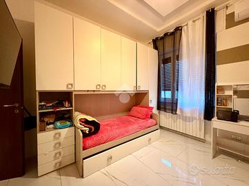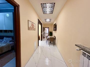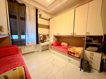 L'appartamento si compone di tre locali: un ampio soggiorno con cucina abitabile separata, due camere da letto, di cui una matrimoniale ed una singola, ed un bagno finestrato con doccia.
