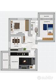 Proponiamo in vendita trilocale situato al primo piano di un contesto condominiale degli anni '70, servito da ascensore. L'appartamento si apre su un ampio ingresso che conduce al luminoso soggiorno con accesso diretto al balcone. La cucina è separata ed abitabile, ideale per la vita quotidiana. La zona notte è composta da due camere da letto di generose dimensioni, di cui una dotata di balcone privato. Il bagno è finestrato e completo di vasca. Serramenti e impianto elettrico appena rifatti. Completano la proprietà un box singolo e una cantina inclusi nel prezzo. L'immobile sarà libero da LUGLIO 2027.