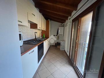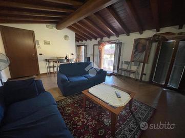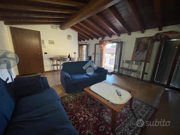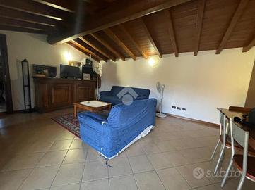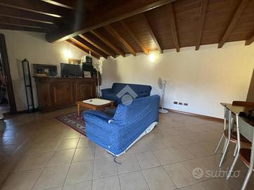 Al secondo e ultimo livello troviamo infine un trilocale mansardato, caratterizzato da ambienti caldi e accoglienti, composto anch'esso da soggiorno, cucina separata, camera matrimoniale, studio e bagno con doccia, oltre a un ulteriore posto auto di proprietà.