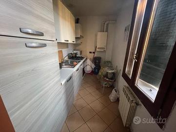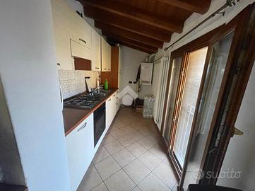 Al primo piano si sviluppa invece un trilocale funzionale e luminoso, dotato di soggiorno, cucina separata, camera matrimoniale, studio utilizzabile anche come seconda camera e bagno con doccia; l'abitazione dispone inoltre di un terrazzino privato e di un posto auto di proprietà.