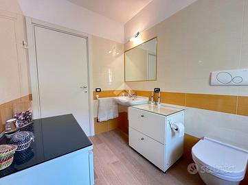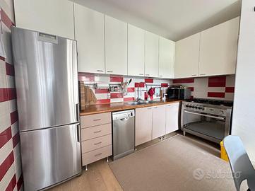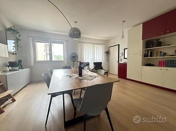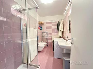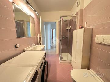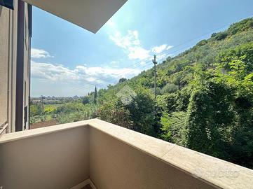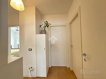 Internamente gli spazi sono così suddivisi: ingresso su luminoso soggiorno con cucina a vista, due camere da letto matrimoniali, di cui una con accesso a balcone privato, presenza dei doppi servizi uno finestrato con vasca e l'altro cieco.