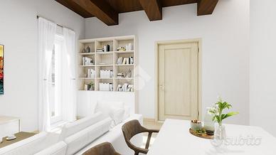 POIANO - PROSSIMA REALIZZAZIONE IN CORTE PRIVATA Consegna prevista: FINE 2026 VANTAGGIO FISCALE - BONUS ACQUISTO IMMOBILE RISTRUTTURATO. L'acquisto di questa unità come PRIMA CASA consente di beneficiare di una detrazione IRPEF, ripartita in 10 rate annuali di pari importo. IN PARTICOLARE PER QUESTO APPARTAMENTO PRIMA CASA DETRAZIONE DI EURO 30.000 circa. In un contesto esclusivo e immerso nel verde, a soli 6 km a nord-est dal centro di Verona, tra le colline, nasce un nuovo intervento di completa ristrutturazione all'interno di una splendida corte storica, dove sorgeranno 10 nuove unità abitative moderne e funzionali. UNITA'5 - PIANO PRIMO - 90 mq La soluzione abitativa proposta si sviluppa al piano primo ed è composta da soggiorno-cucina open space, due camere da letto, bagno, 2 balconi, 2 ripostigli, posto auto scoperto. CAPITOLATO TECNICO - FINITURE E DOTAZIONI Pavimenti: Gres porcellanato di prima scelta, in tinta unica a scelta da campionario visibile presso rivenditore autorizzato. In corrispondenza delle porte interne verranno installate piattine in ottone o acciaio per assorbire le dilatazioni del materiale Battiscopa in legno verniciato bianco. Rivestimenti bagni: Gres porcellanato in tinta unica. Altezza posa: 1,20 m per le pareti generali, 2,40 m per le pareti doccia Serramenti esterni: In PVC bianco con apertura a battente/ribalta e microventilazione di serie. Telaio da 70 mm con apertura verso l'interno. Zanzariere già installate all'esterno di ogni serramento. Scuri: In alluminio a pacchetto, stile "alla vicentina", colore a scelta. Porte interne: Modello cieco, battente o scorrevole, finitura laminato bianco liscio. Maniglie in lega di alluminio effetto cromo satinato. Porta d'ingresso blindata classe 3, completa di spioncino e limitatore di apertura. Impianto di riscaldamento e raffrescamento: Autonomo a pavimento. Caldaia esterna murale a condensazione marca Ariston. Predisposizione per impianto di climatizzazione: attacchi, scatol