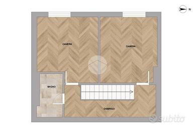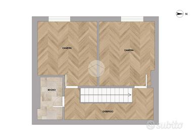 Una scala interna conduce al piano superiore (sesto piano), dove si sviluppa la zona notte, composta da due camere da letto e bagno.