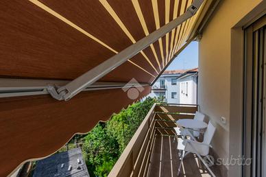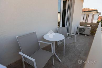 La disposizione interna dei locali lo rende un'ottima soluzione per la locazione a stanze o l'attività di B&B: l'ingresso ci conduce alla zona living con cucina la quale separa le due stanze matrimoniali entrambe con il proprio bagno e l'uscita su di un balcone che dispone di tende da sole elettriche con sensori antivento.