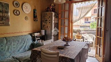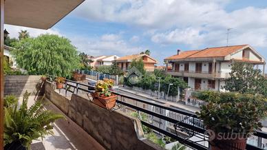 Nella zona Nord di Viagrande, lontana dal traffico del centro ma con i servizi di prima necessità nelle immediate vicinanze. Raggiungibile a piedi, il supermercato Coop distante 250 m. Nelle vicinanze anche bar, panifici, pizzerie ed uffici professionali entro 1 km. Contesto signorile, attorniato da ampie aree verdi, ville singole, appartamenti in villa, ville bifamiliari di recente costruzione e non, che permettono di godere la tranquillità di una zona decentrata ma servita. La villa: costruzione realizzata nel 1990, su due livelli fuori terra e la zona garages al piano seminterrato raggiungibile dalla scivola comune accessibile dal cancello automatico su via Antonello Da Messina. A comporre lo stabile, quattro appartamenti, due al piano terra e due al piano primo, ognuno con accesso privato. L'appartamento: al primo piano della villa, accessibile tramite cancelletto privato. Il cortile con aiuola al piano terra per una metratura di mq 24, e la scala di accesso all'appartamento. Da un comodo balcone con vista sul mare, si accede all'ingresso di casa sul soggiorno. A seguire il disimpegno, due vani, il bagno e la cucina a completare gli spazi interni di casa. Dalla cucina si accede ad un secondo balcone con vista sul Monte Serra, esposto ad Ovest, in parte verandato. Compresi nella vendita un giardino di mq 55 accessibile dalla zona garages ed un ampio box di mq 36. Le condizioni son parzialmente da ristrutturare, infissi in legno mono vetro con persiane, impianti originari, riscaldamento autonomo con caldaia e piastre ed un autoclave con cisterna da 8.000 litri. Da riprendere le condizioni della scala. Per ulteriori informazioni contattaci o vieni a trovarci via Lavina 347, Aci Sant'Antonio. Ti Aspettiamo!