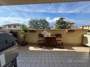 La zona giorno si presenta come un ambiente unico e ben distribuito, dove soggiorno e cucina convivono in un ampio open space, studiato per offrire massima comodità e vivibilità. L'atmosfera è calda e luminosa grazie alle grandi aperture verso l'esterno, che garantiscono un'ottima luce naturale durante tutta la giornata. Un grande valore aggiunto è la terrazza abitabile, accessibile direttamente dalla zona giorno: uno spazio esterno curato e riservato, ideale per trascorrere momenti di relax, organizzare cene all'aperto o semplicemente godersi un angolo di tranquillità nel cuore della casa.