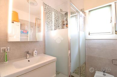 A servizio della zona notte si trova un bagno finestrato, moderno e funzionale, dotato di comoda doccia e finiture di qualità.
