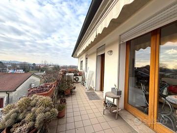 Nel cuore della località di San Gaetano a Vicenza, proponiamo un appartamento in vendita che coniuga comfort e funzionalità. Situato all'ultimo piano di un edificio dotato di ascensore, l'immobile si estende su una superficie di 85 mq, offrendo spazi ben distribuiti e luminosi. La costruzione recente, risalente al 1996, garantisce una struttura moderna e ben mantenuta. L'appartamento comprende due camere da letto, ideali per una famiglia o per chi desidera uno spazio aggiuntivo per ospiti o studio. I due bagni presenti, uno cieco con doccia e l'altro finestrato con vasca, assicurano praticità e comodità nella vita quotidiana. Un ampio terrazzo di circa 13mq offre uno spazio esterno privato, perfetto per momenti di relax.