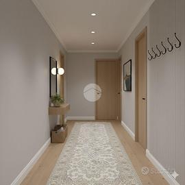 La zona giorno è composta da angolo cottura e soggiorno in open space. Tramite il disimpegno accediamo alle due camere da letto matrimoniali.