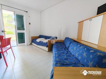 L'immobile di 35mq composto da cucina, camera da letto e bagno con giardino all'ingresso.
