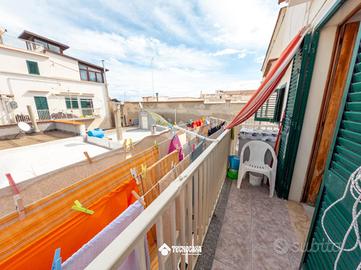 L'appartamento si compone di un soggiorno luminoso con una cucina e una camera da letto spaziosa, una piccola cameretta e ripostiglio sul terrazzo.