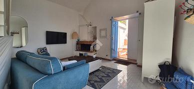 - soggiorno accogliente con tipico soffitto a volta, camino che dona intimita' e ampia finestra affacciata sul mare;