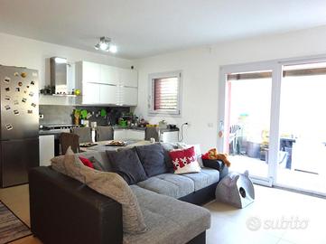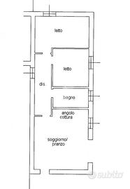 L'appartamento si compone di: ingresso su ampia zona pranzo/soggiorno con angolo cottura per una superficie complessiva di circa 30 mq, lungo disimpegno notte arredabile, bagno finestrato con doccia e 2 camere da letto di cui una matrimoniale e una doppia.