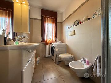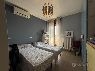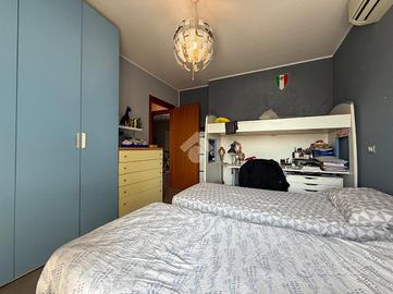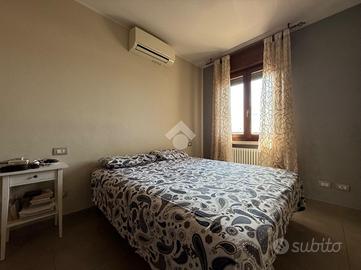 L'immobile si trova al primo piano e si compone di una luminosa zona giorno open space con angolo cottura, un bagno finestrato con doccia e due camere da letto matrimoniali: una con accesso diretto al balcone e l'altra dotata di bagno privato.