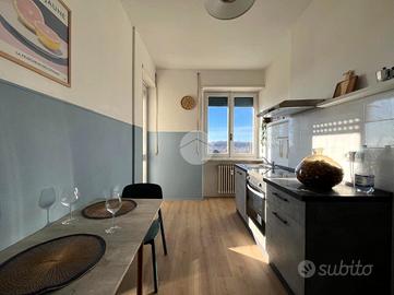 Nel cuore di Vigliano, proponiamo in vendita un luminoso appartamento sito al quinto piano di una palazzina dotata di ascensore. L'immobile offre una vista panoramica che valorizza ulteriormente la sua posizione strategica. A poca distanza si trovano due importanti arterie stradali: la via Milano e la statale Biella-Cossato, che garantiscono un facile accesso ai principali servizi e collegamenti. L'appartamento è composto da tre locali, tra cui un'ampia camera da letto, una cucina abitabile e un luminoso soggiorno, oltre a un bagno con doccia recentemente ristrutturato. Tutte le camere, eccetto il bagno, sboccano sui due balconi, che offrono spazi esterni ideali per momenti di relax. L'immobile è parzialmente arredato, permettendo di personalizzare gli ambienti secondo le proprie esigenze. Questa soluzione abitativa rappresenta un'opportunità interessante per chi cerca comfort e praticità in una zona ben servita.