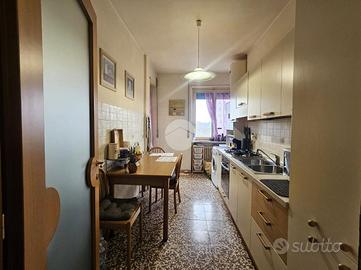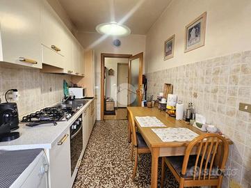 L'ingresso si apre su un corridoio che disimpegna in modo funzionale tutti gli ambienti della casa. La zona giorno è composta da un ampio e luminoso soggiorno con accesso al balcone, mentre la cucina, separata e comodamente abitabile, gode anch'essa dello sfogo sullo stesso balcone, offrendo uno spazio esterno pratico e piacevole.