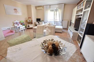 L'immobile è così composto: ingresso da balcone loggiato che conduce al disimpegno, soggiorno doppio, cucina abitabile, bagno padronale finestrato con box doccia, comoda zona lavanderia, due ampie camere matrimoniali e tre uscite esterne sui balconi.