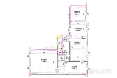 L'appartamento completamente da ristrutturare ed è composto da: ampio ingresso, sala, cucina abitabile, bagno e due camere matrimoniali.