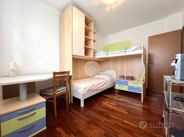 Dall'ingresso, si accede a un'ampia e luminosa zona giorno esposta a sud, ideale per godere di una piacevole luce naturale durante tutto il giorno, cucina separata abitabile, doppi servizi di cui uno cieco con doccia e uno finestrato con vasca, camera doppia e camera matrimoniale con terrazzo privato.