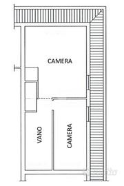 All'ingresso, un comodo disimpegno che attualmente ospita un armadio guardaroba, ci conduce nella zona giorno open space con angolo cottura di oltre 40 mq, dotato di due poggioli che donano luminosità all'ambiente. Al piano è presente anche un bagno finestrato con box doccia.