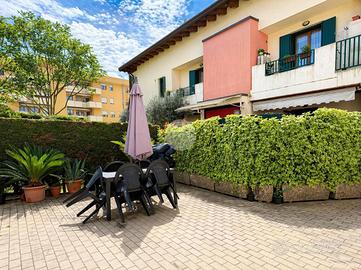 BUSA - Nel cuore di Busa, in posizione centrale e comoda a tutti i servizi raggiungibili a piedi, proponiamo in vendita appartamento al piano terra con scoperto privato su palazzina del 2004, ben tenuta e di recente costruzione. L'immobile si sviluppa su un unico livello e offre spazi funzionali e ben distribuiti. La zona giorno è composta da cucina e soggiorno in open space, luminosi e accoglienti, con accesso diretto a un comodo portico, ideale per pranzi e momenti di relax all'aperto. Da qui si accede al giardino privato, ben recintato e rifinito con siepe, perfetto per garantire privacy e tranquillità. La zona notte comprende due camere da letto, una matrimoniale e una doppia, entrambe spaziose. I bagni sono due: uno dotato di vasca e l'altro di doccia, per il massimo comfort nella vita quotidiana. Completa la proprietà un garage. Soluzione ideale per chi cerca comodità, indipendenza e la praticità di avere tutti i servizi sotto casa.