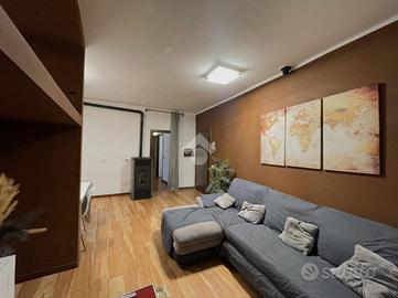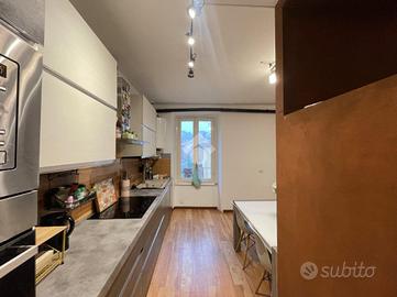 L'immobile si compone di: luminosa zona giorno openspace con cucina a parete fatta su misura e prima camera matrimoniale, spazioso disimpegno che conduce alla zone notte, capiente camera doppia, bagno finestrato con tutti i sanitari e la vasca ed, infine, ulteriore stanza utilizzabile come studio/ripostiglio.