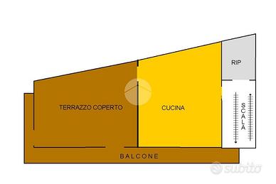 La composizione dell'immobile si articola con la zona notte posta interamente al primo piano e composta da: accogliente disimpegno all'ingresso, camera da letto, due camerette e un bagno. Al secono piano si sviluppa per intero la zona giorno, con un comodo ripostiglio e un'ampia cucina verandata che conduce direttamente al terrazzo coperto, il quale garantisce una zona di comfort e relax.