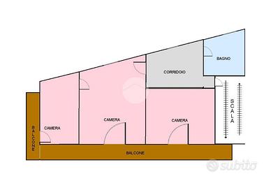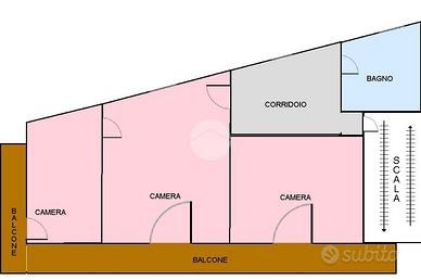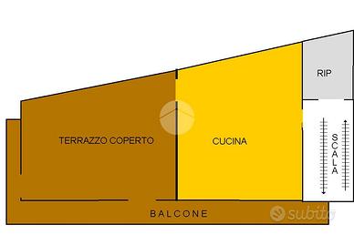 La composizione dell'immobile si articola con la zona notte posta interamente al primo piano e composta da: accogliente disimpegno all'ingresso, camera da letto, due camerette e un bagno. Al secono piano si sviluppa per intero la zona giorno, con un comodo ripostiglio e un'ampia cucina verandata che conduce direttamente al terrazzo coperto, il quale garantisce una zona di comfort e relax.