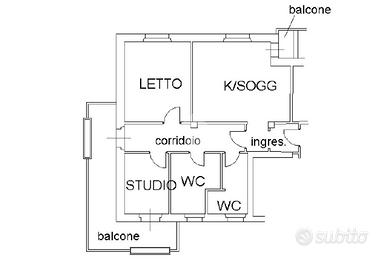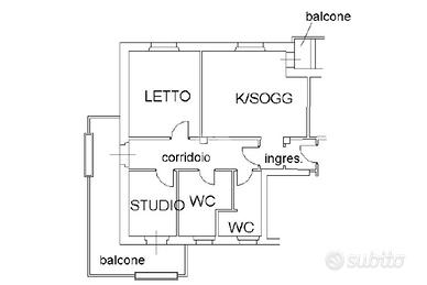 L'appartamento si trova al piano primo e si compone di zona di ingresso che ci conduce all'interno della zona soggiorno con angolo cottura di 18.80 mq con accesso ad un piccolo balcone.