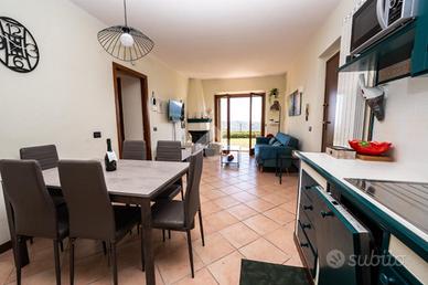 APPARTAMENTO TRILOCALE CON VISTA LAGO COSA SAPERE SULL'IMMOBILE Proponiamo in vendita un appartamento trilocale, venduto completamente arredato, inserito in contesto curato con possibilità di utilizzo come casa vacanza, soluzione ideale sia come investimento che come abitazione per il tempo libero, impreziosito da una splendida vista lago aperta sul suggestivo Golfo di Salò. L'immobile si apre su un ampio giardino privato con vista lago, uno spazio esterno che rappresenta un vero valore aggiunto, perfetto per momenti di relax e per vivere appieno l'ambiente circostante, godendo di un panorama unico e di grande fascino. L'ingresso conduce alla zona giorno, composta da un soggiorno spazioso con cucina a vista, un ambiente accogliente e ben organizzato, pensato per la quotidianità, anch'esso valorizzato dalla piacevole vista lago. Una porta separa in modo funzionale la zona giorno dalla zona notte, dove troviamo due camere matrimoniali di generose dimensioni e un bagno moderno, recentemente ristrutturato. Si specifica che l'immobile è dotato di un cavedio, utilizzato come locale lavanderia e pratico ripostiglio. Il bagno è stato rifatto e la piscina condominiale è stata rinnovata nel 2025, interventi che rendono l'immobile ancora più interessante anche in prospettiva futura. Completa la soluzione un box auto coperto, privato e singolo. Una proposta pronta da vivere, ideale per chi desidera una casa curata, con spazio esterno e una splendida vista lago sul Golfo di Salò, inserita in un contesto piacevole, perfetta sia per uso personale che per locazioni turistiche. UBICAZIONE E CONTESTO Mezzane di Villanuova sul Clisi è una località tranquilla e ben collegata, situata a pochi minuti dal centro del paese, facilmente raggiungibile in auto o con i collegamenti locali, e ben posizionata per raggiungere comodamente Brescia e Salò. La posizione è pratica e ben servita: nelle immediate vicinanze si trovano scuole, supermercati, uffici postali e attività di prim