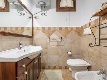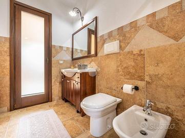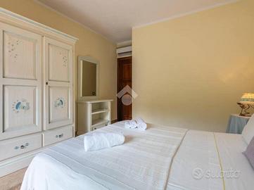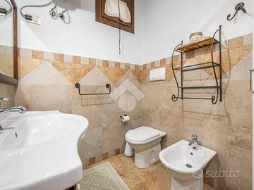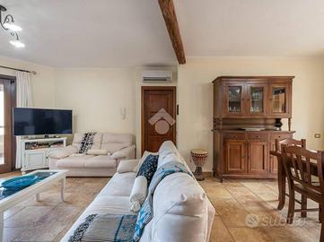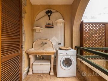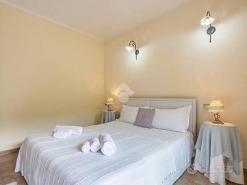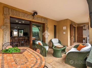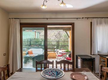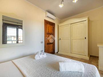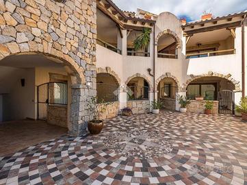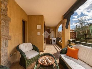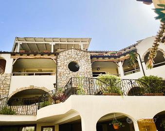 Villasimius: curato appartamento di tipologia trilocale, disposto al primo piano di un recente stabile con ascensore, a pochi passi dalla piazza e prossimo ai servizi. L'immobile si distingue per la presenza di finiture di pregio, dove elementi in pietra e in legno creano un'atmosfera calda, accogliente e di grande charme. L'appartamento dispone di un ampio e luminoso soggiorno con cucina a vista, impreziosito da porte a vetro scorrevoli che conducono al terrazzo vivibile, perfettamente attrezzato e ideale per momenti di relax all'aperto, e a seguire il giardino privato, mentre sul lato opposto, terrazza con vista sul paese. La zona notte è composta da due camere matrimoniali, entrambe con uscita in veranda e due bagni con areazione diretta, uno in particolare con porta finestra. L'appartamento è perfettamente arredato con mobili di pregio, ricercati e tradizionali, dove la cura per il dettaglio e la scelta dei materiali rendono questa soluzione un'opportunità unica e raffinata. L'immobile è recente, pronto all'uso, e completo di posto auto coperto. Siamo a disposizione per qualsiasi ulteriore informazione e per programmare un sopralluogo, dal lunedì al sabato, previo appuntamento.