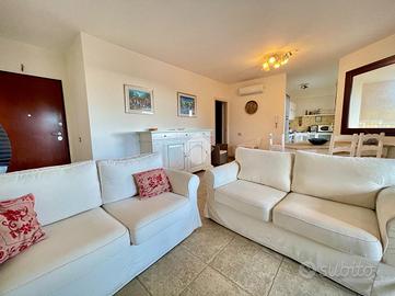 Villasimius: Vi proponiamo un esclusivo trilocale con dominio panoramico sul paese e vista mare. L'immobile si trova in centro, presso una delle zone più rinomate di Villasimius, inserito in un piccolo stabile di recente realizzazione, riservato e silenzioso. Finemente arredata e dotata di impianto fotovoltaico la proprietà è costituita da un'ampia e luminosa zona pranzo-soggiorno, con vetrate in uscita sul panoramico terrazzo a livello.La zona cottura presenta una ampia porta finestra che consente comodamente l'uscita sull'esterno attrezzato. La zona notte si compone di due camere da letto, di cui una matrimoniale e da due bagni. Completa la proprietà un pratico posto auto. Possibilità di acquistare la cantina particolarmente rifinita e finestrata, dotata di diversi accorgimenti, per un valore di € 60.000,00 oltre il prezzo dell'immobile. Non esitate a contattarci per qualsiasi altra informazione e per fissare un sopralluogo, dal lunedì al sabato.