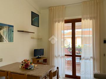 Villasimius: proponiamo in vendita un grazioso trilocale al primo piano, in contesto residenziale, che si distingue per la sua luminosità e riservatezza, grazie alla posizione sopraelevata che offre un piacevole affaccio aperto e una gradevole ventilazione naturale durante tutto l'anno. L'immobile è raggiungibile tramite un pratico vano scala che conduce all'ingresso dell'appartamento. L' entrata conduce direttamente nella luminosa zona giorno, completa di angolo cottura e climatizzata per garantire il massimo dei comfort in ogni stagione. Un pratico disimpegno separa la zona giorno dalla zona notte, dove troviamo un bagno comodo e funzionale, e una prima camera matrimoniale con affaccio diretto sul fronte terrazza. La seconda camera matrimoniale, di dimensioni più generose, è anch' essa dotata di climatizzatore, dotata di finestra che dà sulla zona esterna. Lo spazio esterno è riservato e provvisto di tende da sole. A completare la proprietà un posto auto coperto, incluso nel prezzo dell' immobile. Grazie alla posizione strategica, alla vicinanza dei servizi e al mare, questo immobile rappresenta un'ottima opportunità di investimento, particolarmente adatta per affitti turistici a reddito o come casa vacanze personale da vivere e valorizzare nel tempo. Il prezzo competitivo e le caratteristiche dell'abitazione lo rendono un acquisto vantaggioso e versatile. Contattaci per maggiori informazioni o per prenotare una visita in loco.