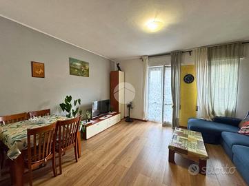 A Villongo, nella zona centrale del paese, proponiamo un trilocale di circa 95 mq situato al piano rialzato di una palazzina degli anni '90. L'ingresso si apre su un comodo disimpegno che introduce alla luminosa zona giorno, dove cucina e soggiorno formano un unico ambiente open space con accesso al balcone. La zona notte è composta da un bagno finestrato con doccia, una camera singola e una camera matrimoniale che dispone di un secondo accesso al balcone. L'appartamento si presenta in buone condizioni, con pavimenti in PVC effetto legno e riscaldamento autonomo. Completano la proprietà un box singolo al piano terra e una cantina. Una soluzione ideale per chi cerca spazi funzionali e un contesto piacevole comodo per tutti i servizi.