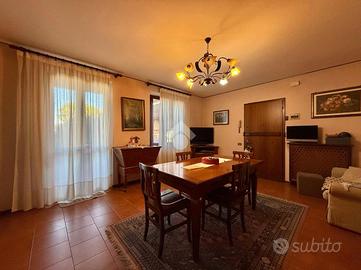 Proponiamo in vendita appartamento trilocale con giardino situato al piano rialzato, ingresso indipendente, in una palazzina del 1983.