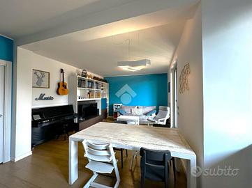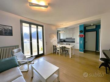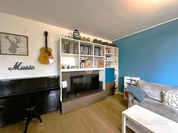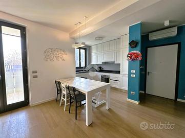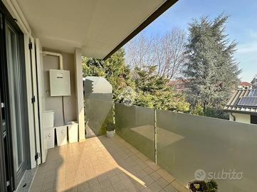 Vimercate Centro. In recente palazzina, posizione tranquilla e non direttamente su strada, proponiamo in vendita un appartamento ideale per chi desidera vivere in centro, senza rinunciare a privacy e comfort. L'ingresso è diretto sul luminoso soggiorno con ampia zona cottura, reso particolarmente piacevole dalla presenza di un terrazzino ben vivibile. Un comodo disimpegno conduce alla zona notte, composta da camera matrimoniale con balcone e da una spaziosa camera doppia con ulteriore terrazzino. L'abitazione dispone inoltre di due bagni entrambi finestrati, completi di vasca e doccia, oltre ad un pratico ripostiglio. L'immobile è dotato di impianto di climatizzazione, a garanzia di un'ottima vivibilità in ogni stagione. Completano la proprietà cantina e box singolo con presa per ricarica elettrica, alimentata da pannelli solari privati, dettaglio che aggiunge valore e funzionalità all'immobile. Le spese condominiali sono ca. 1.400,00 euro annue, a cui aggiungere il costo dell'acqua sulla base dei consumi. Il riscaldamento è autonomo.