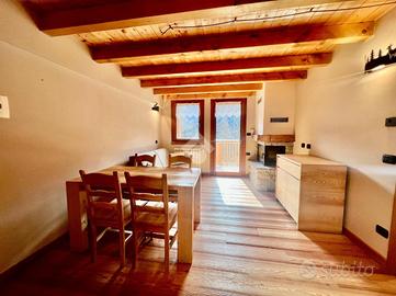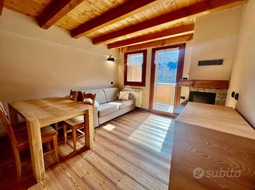 VIONE - VIA GAVERO: In posizione soleggiata proponiamo in vendita appartamento trilocale posto al piano primo di recente costruzione. La soluzione risulta composta da zona giorno con accesso all'ampio balcone,cucina a 'vista' e caminetto a legna. Tramite il disimpegno raggiungiamo la zona notte con camera matrimoniale, cameretta e bagno finestrato con doccia. Possibilità di acquistare il box auto a parte ad € 30.000. Appartamento rogitabile nel 2029 ma utilizzabile fin da subito. PUNTI DI FORZA: soluzione pari al nuovo, box auto, luminosità, ampio sfogo esterno.